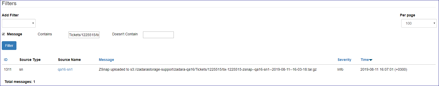 Doesn’t Contain: Exclude log entries that match this case-insensitive string.