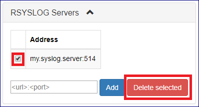 Select the checkbox for the specific syslog daemon server you would like to remove